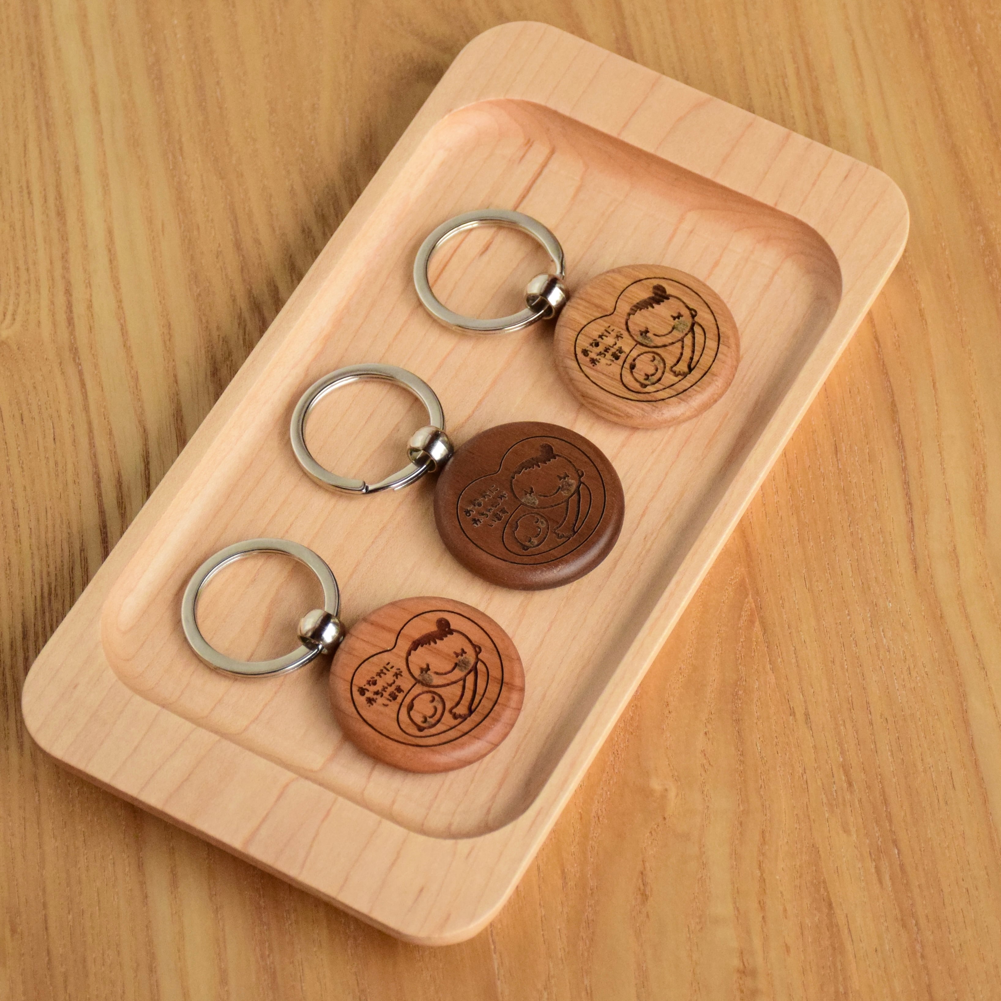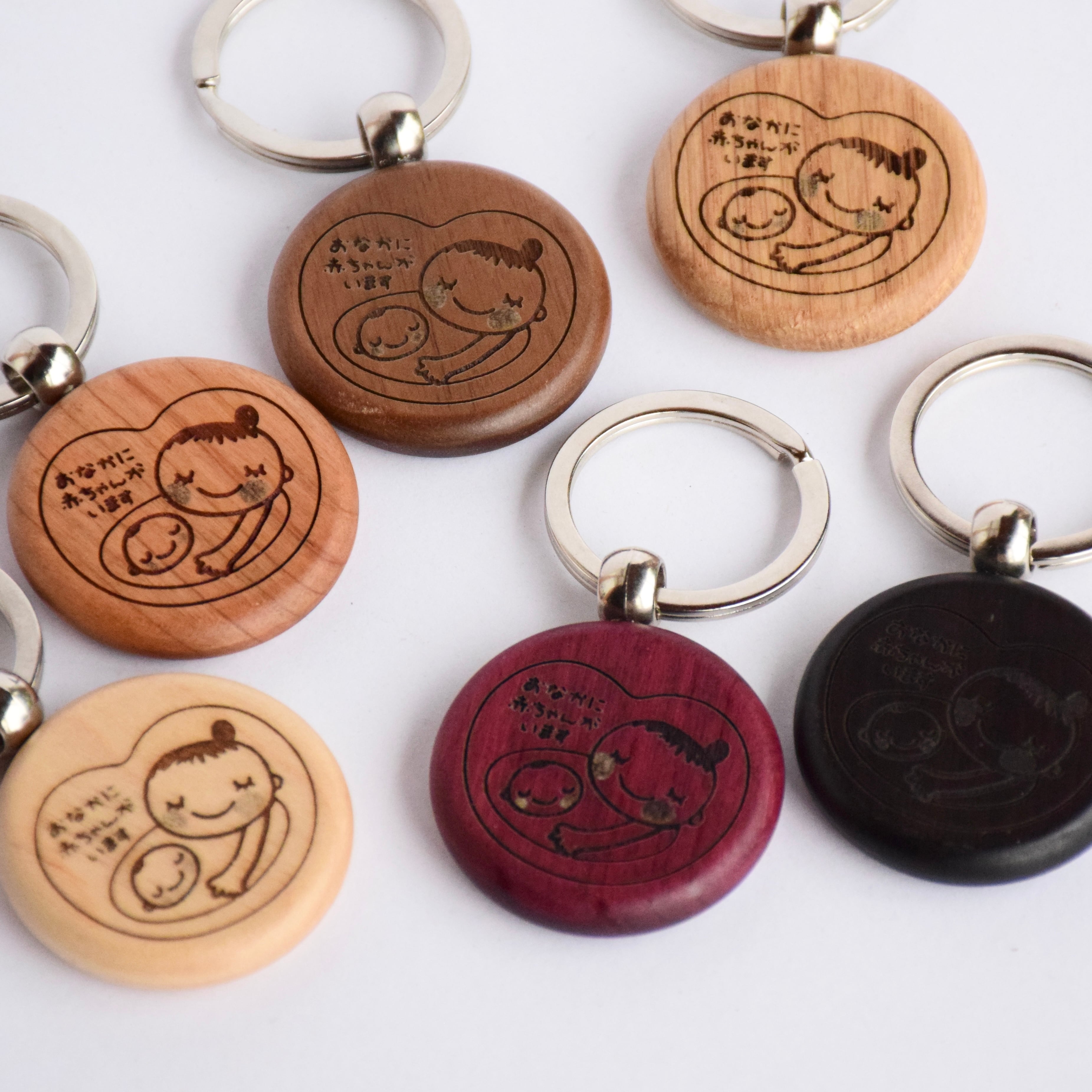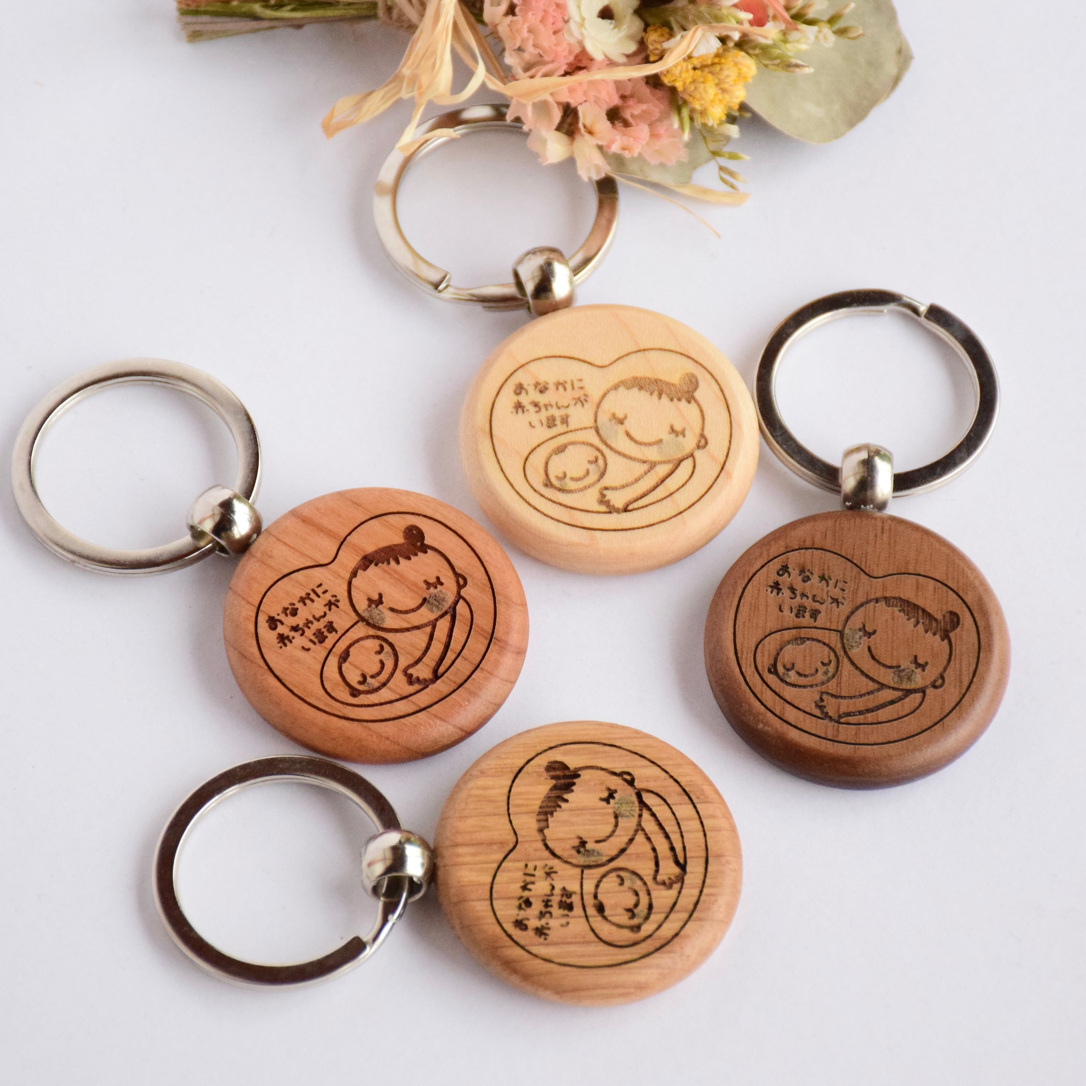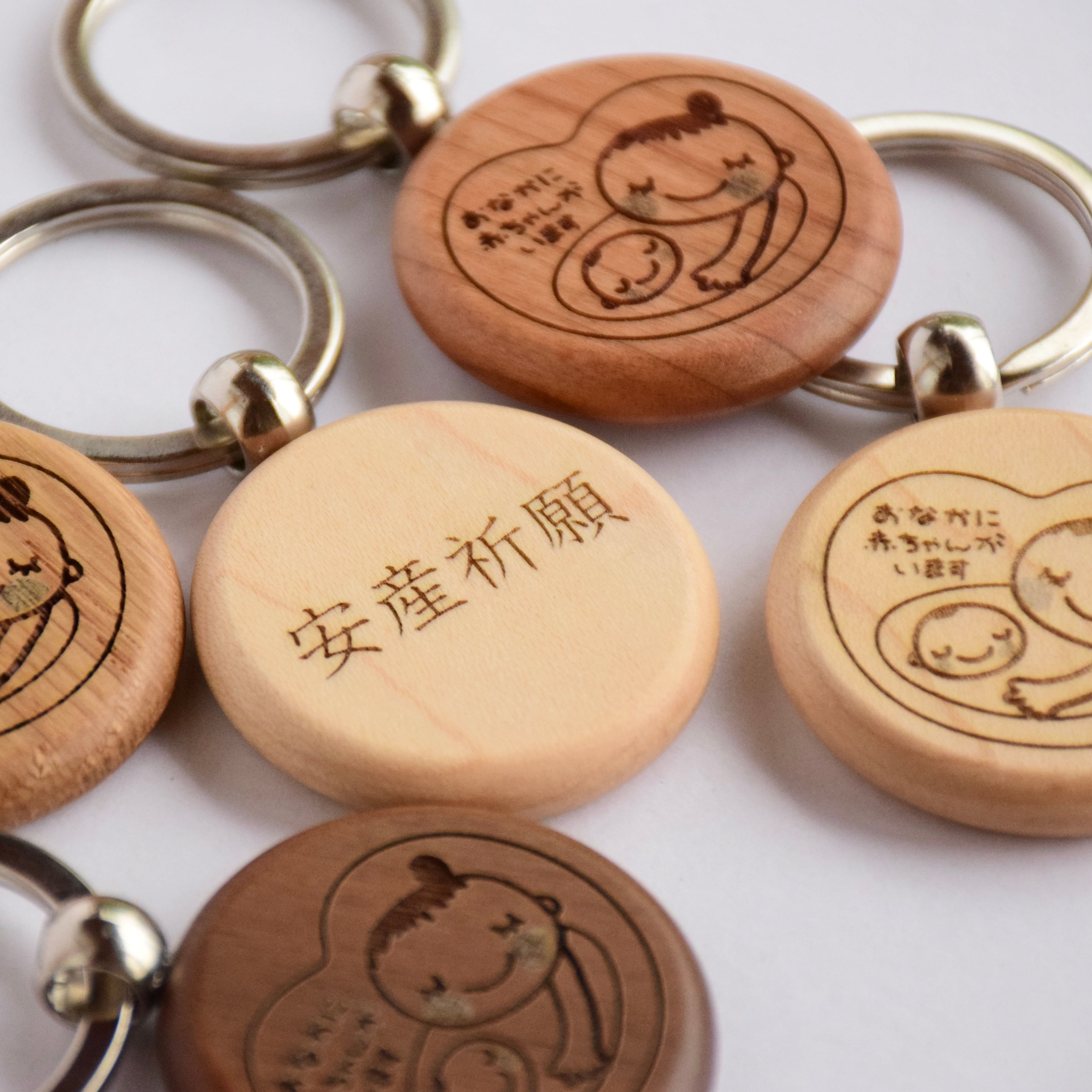 天然木で仕上げたマタニティーマークのキーホルダーです。
